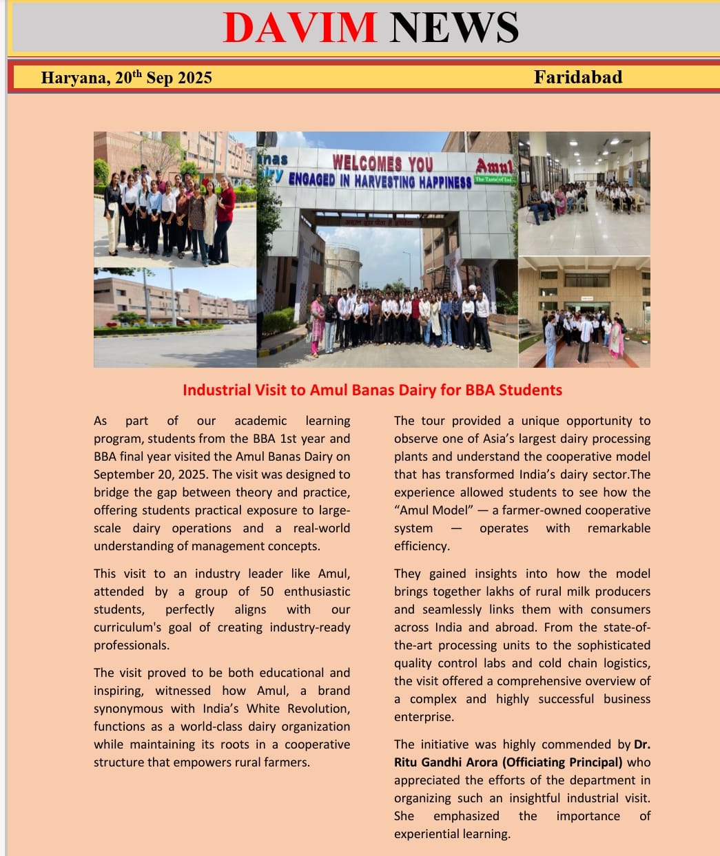 DAV INSTITUTE OF MANAGEMENT , CNCR (Faridabad) was established on 12th October 1997 by DAV College Managing Committee, New Delhi, with Vedic values embedded in the educational vision.