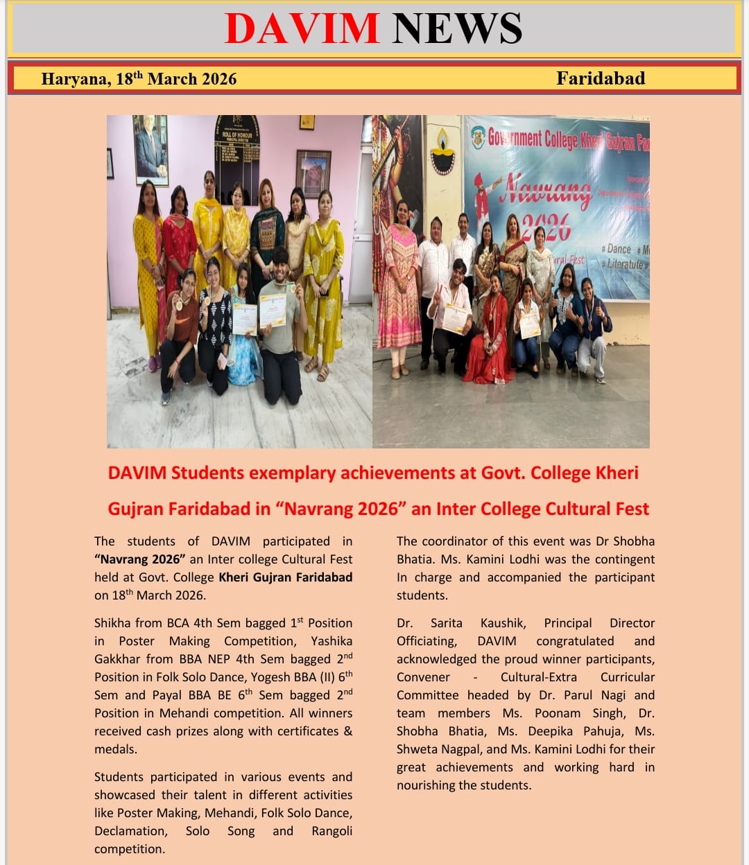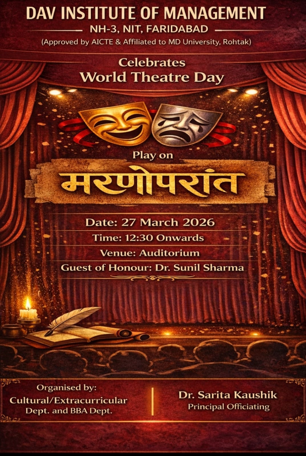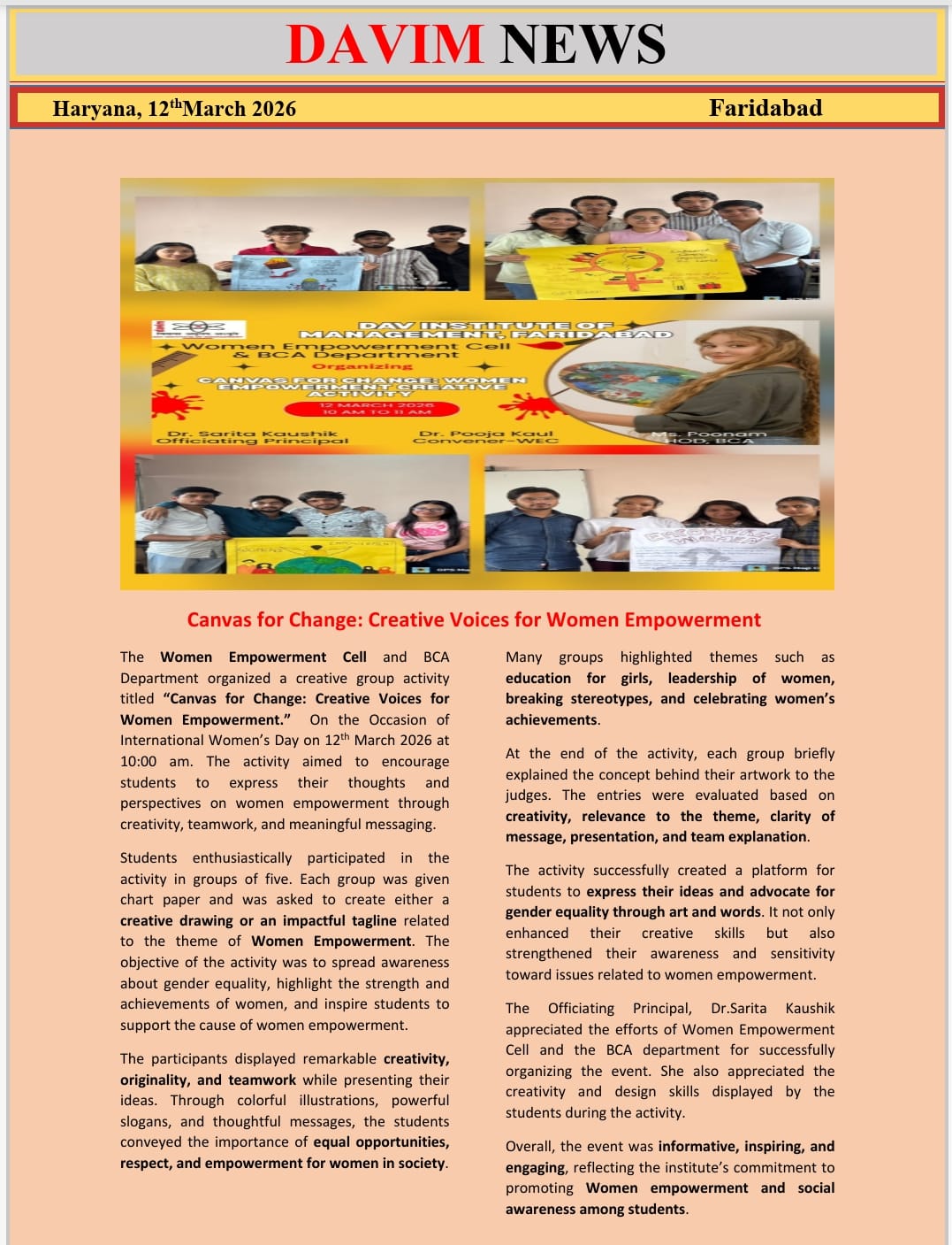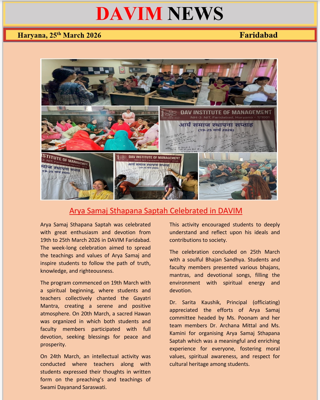 DAV INSTITUTE OF MANAGEMENT , CNCR (Faridabad) was established on 12th October 1997 by DAV College Managing Committee, New Delhi, with Vedic values embedded in the educational vision.