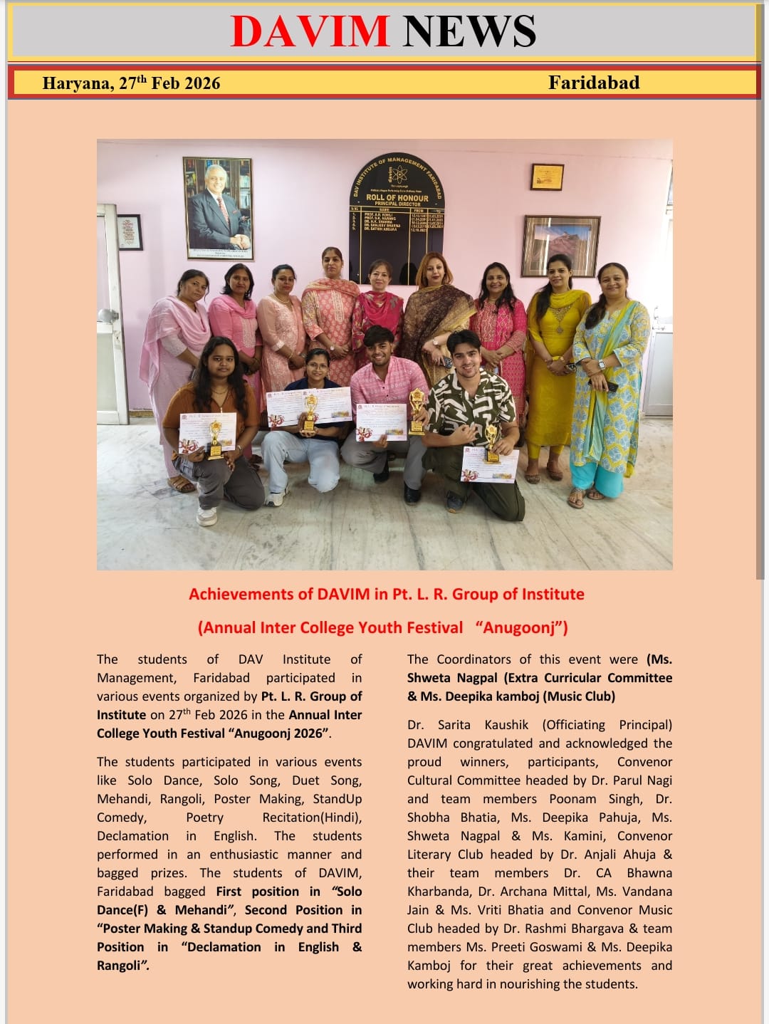 The DAVIM has toiled incessantly and takes pride in the fact that the number of students has increased from 30 to more than 2000. The faculty strength has grown from 5 to 100 plus.