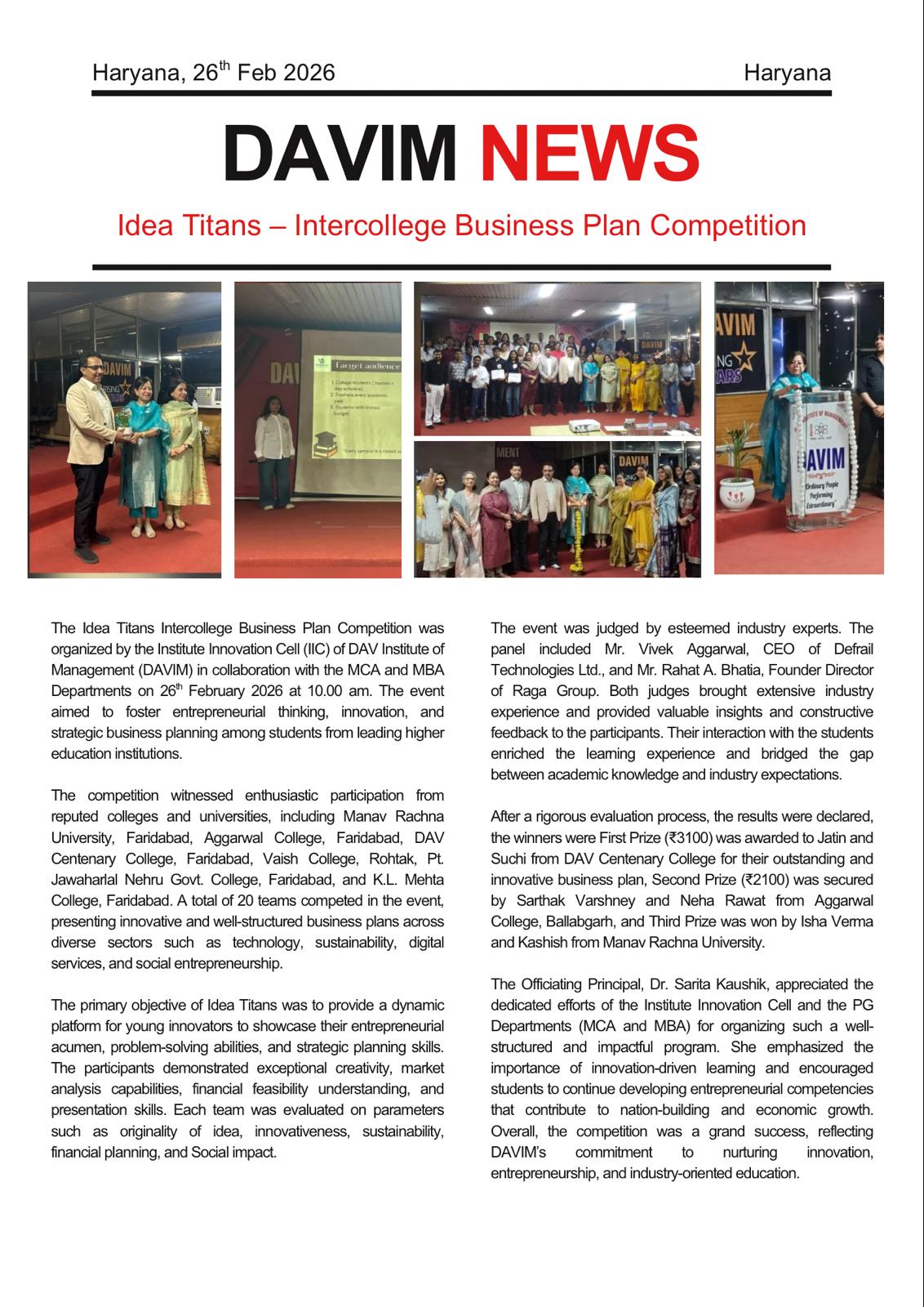 IIC, PG Deptts., DAVIM, Faridabad