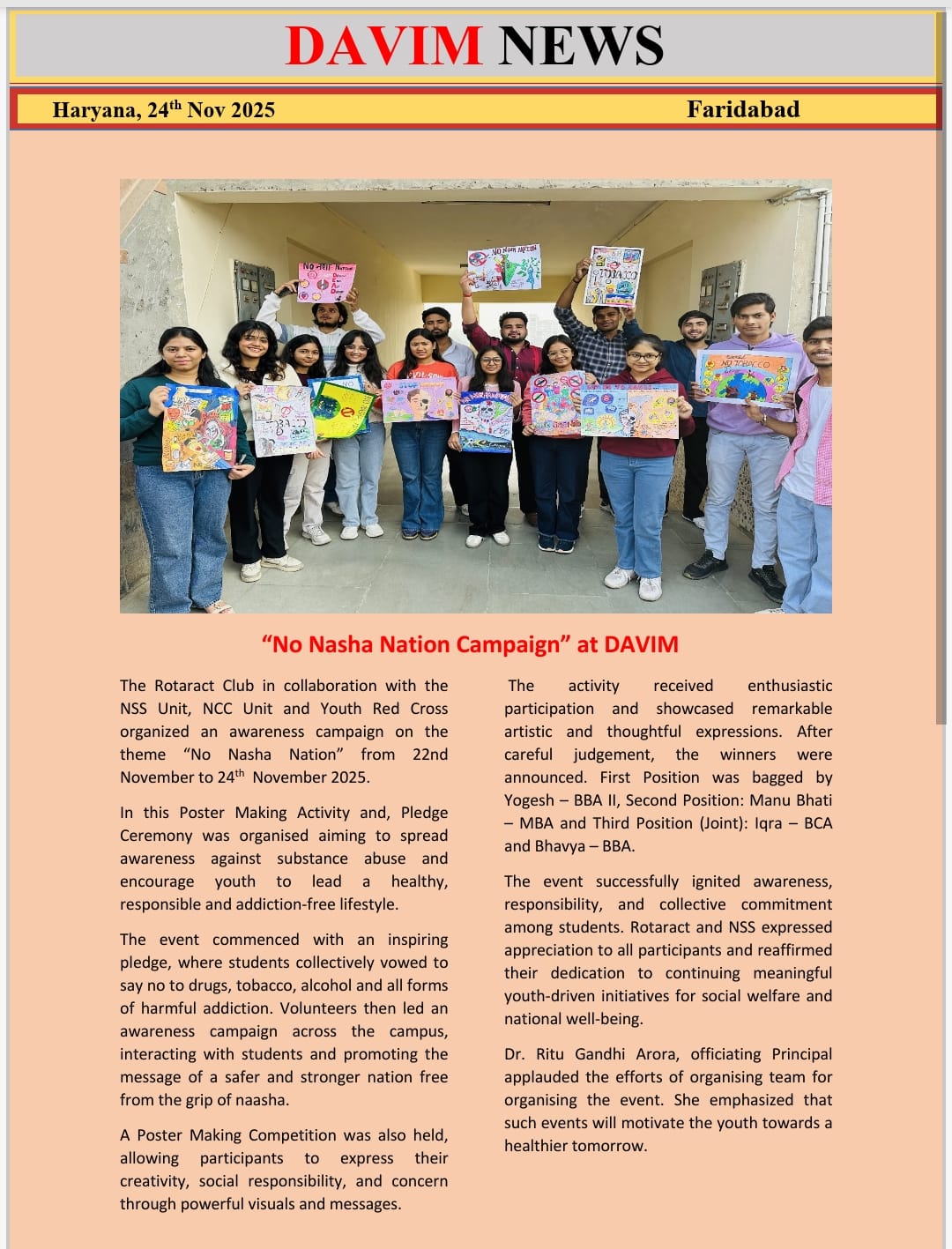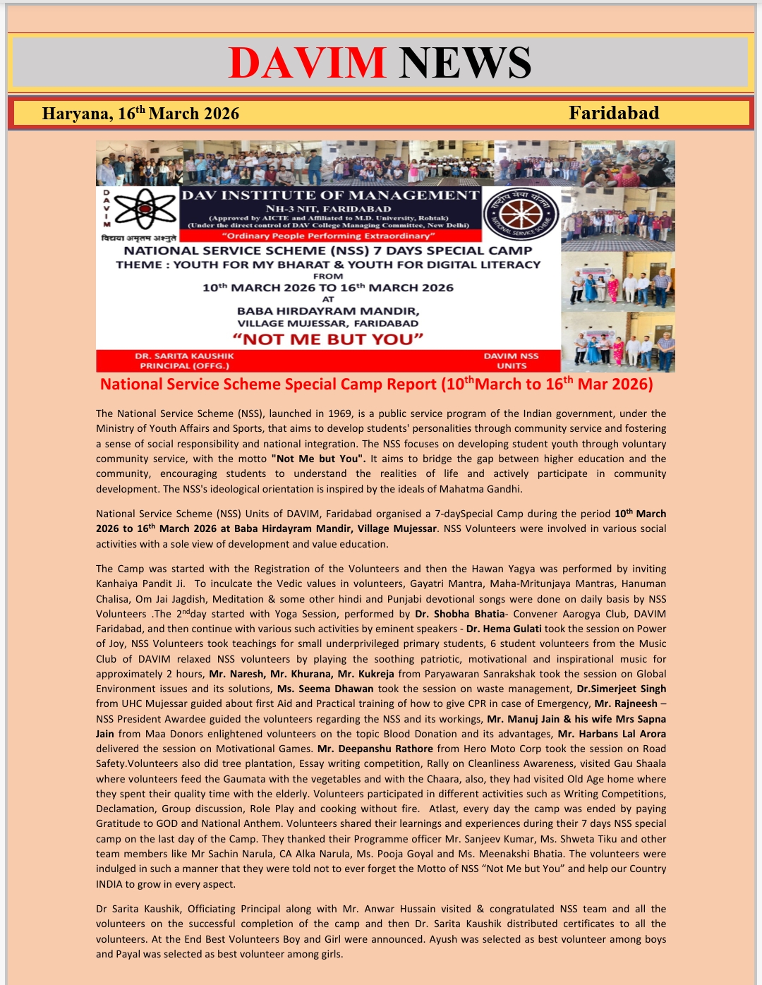 DAV INSTITUTE OF MANAGEMENT , CNCR (Faridabad) was established on 12th October 1997 by DAV College Managing Committee, New Delhi, with Vedic values embedded in the educational vision.