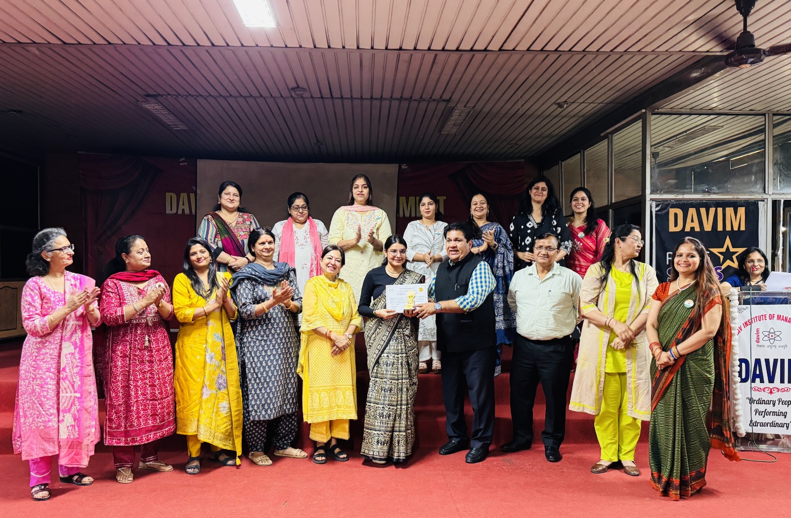 Dr. Satish Ahuja, Principal Director, DAVIM and Dr.Ritu Gandhi Arora, Vice Principal, DAVIM appreciated the efforts of Patriots Club team members- Dr. Anjali Ahuja (Convenor), Dr. Rashmi Bhargava, CA Alka Narula, Ms. Neetu Juneja, Dr. Nidhi Turan, Dr.Dhrity Gulati, Ms. Esha Khanna, Ms. Akanksha Arora, Ms. Archana Mittal and Ms. Jyoti Ahuja for organizing such an inspirational program.