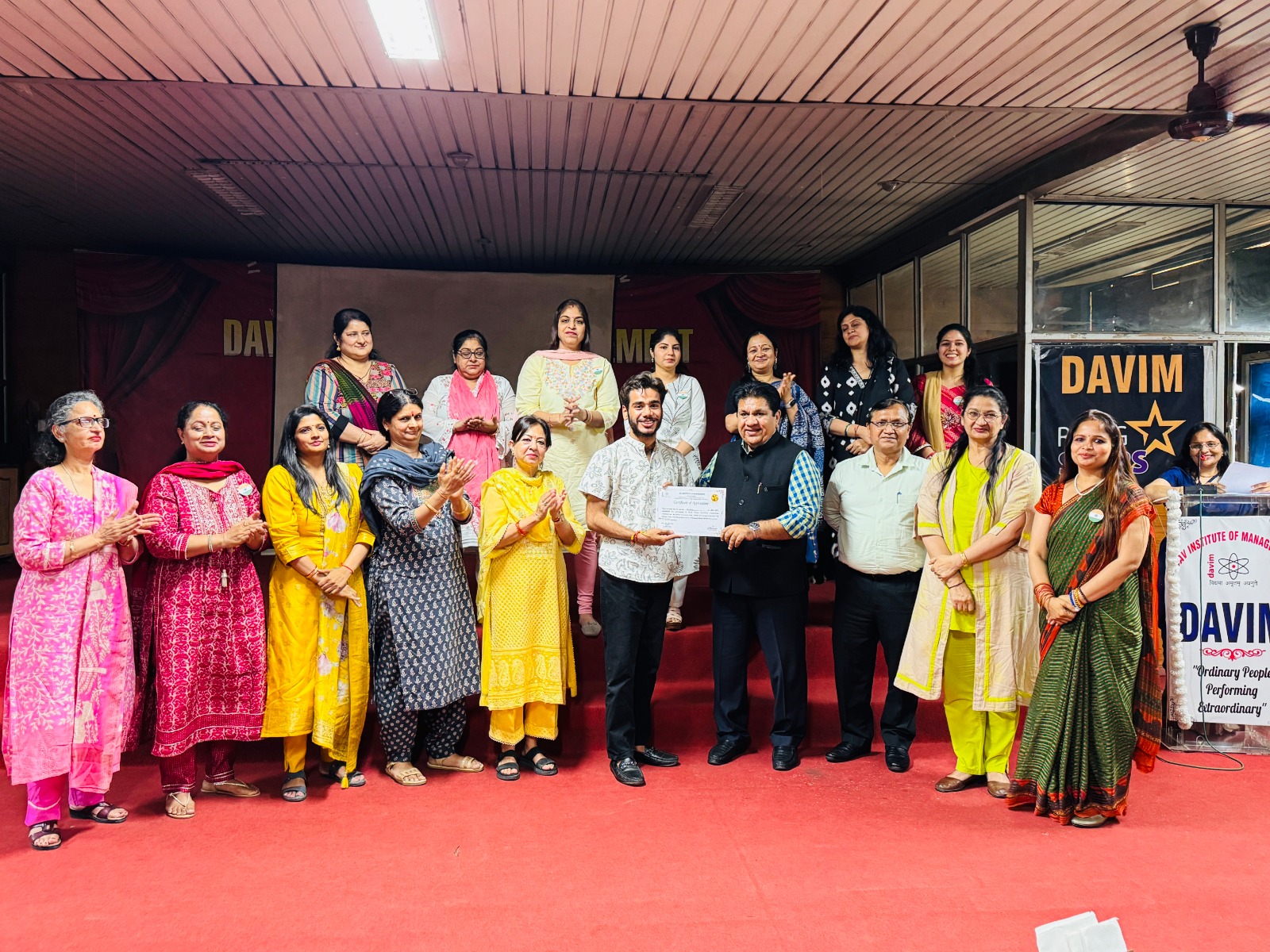 Dr. Satish Ahuja, Principal Director and Vice Principal Dr.Ritu Gandhi Arora applauded the efforts of entire team members of Patriots club, NCC and Music club of DAVIM Dr. Anjali Ahuja, Dr. Rashmi Bhargava, Dr. Sarita Kaushik, Dr. Anamika Bhargava, Dr. Deepak Sharma, CA Alka Narula, Dr. Nidhi Turan, Ms. Neetu Juneja, Dr.DhrityAhuja, Ms. Archana Mittal, Ms. Esha Khanna, Ms. Jyoti Ahuja, Ms. Akansha for organizing such an event on Republic Day.