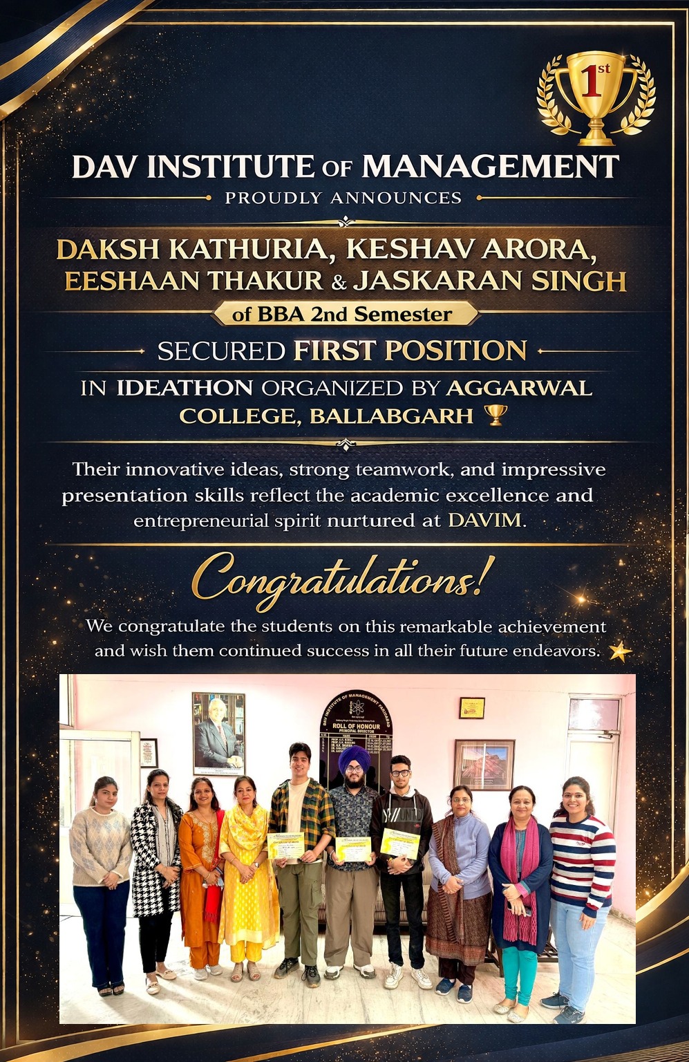 The DAVIM has toiled incessantly and takes pride in the fact that the number of students has increased from 30 to more than 2000. The faculty strength has grown from 5 to 100 plus.